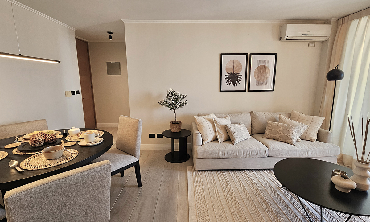 Departamentos modernos y acogedores, con todo lo que necesitas para sentirte en casa. Ubicación inmejorable en Las Condes, cerca del metro, cafés, restaurantes y centros comerciales. Diseño pensado para el descanso, con espacios luminosos y detalles que inspiran tranquilidad. Atención cercana y personalizada, porque para nosotros lo más importante eres tú.